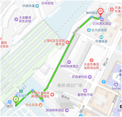 大連站:大連站南廣場出發,向東北方向約500到達日月潭大酒店。