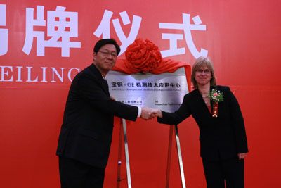 上午, “寶鋼—GE檢測技術應用中心” 揭牌儀式在寶鋼賓館隆重舉行。該中心將借助GE檢測科技強大的研發能力和先進的無損檢測技術,結合寶鋼檢測公司在鋼鐵行業應用領域的優勢,為寶鋼提供產品檢驗和設備檢測診斷的解決方案。